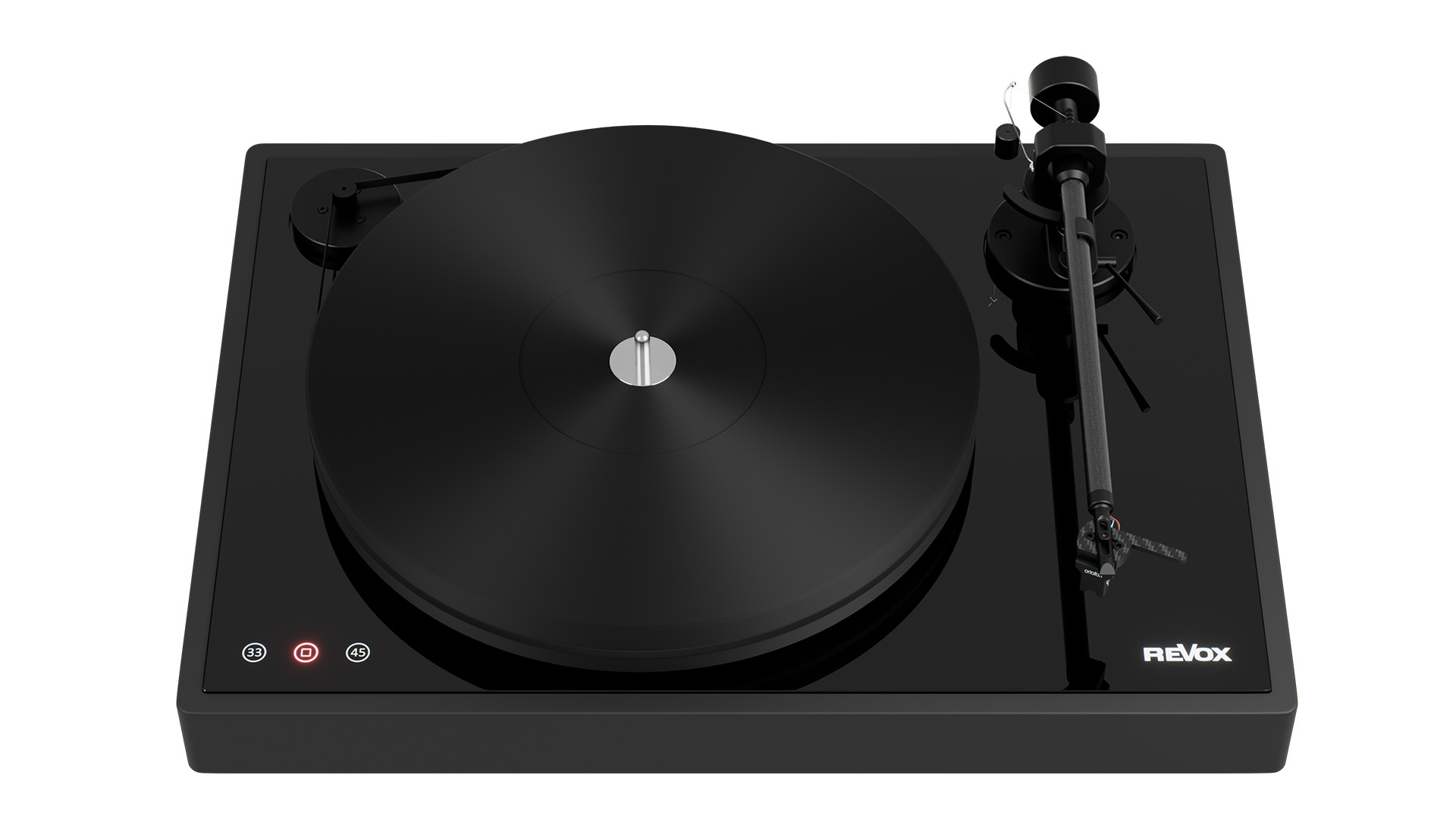 Der Tonarm wird aus hochwertigen Metallen gefertigt, das Tonarmrohr aus Carbon-Fiber. Die Tonarmlitze ist durch Handlötung direkt mit dem Vorverstärker verbunden.