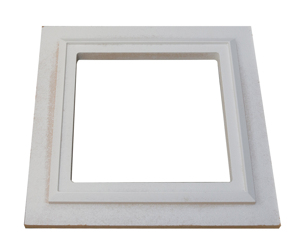 Material: MDF white primed. Dimensions: 261 x 261 x 25 mm, cut-out 165 mm round (Inceiling I82)